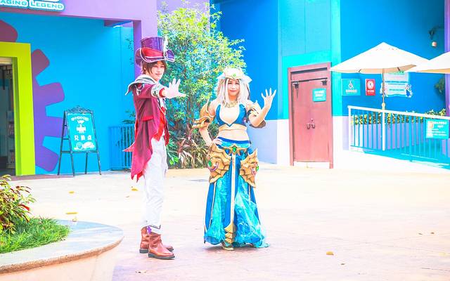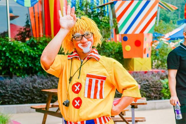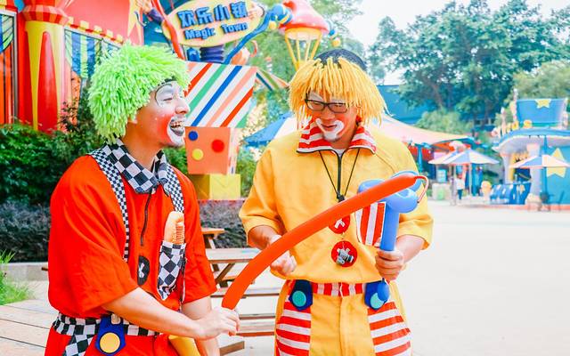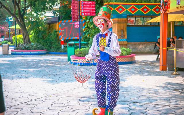 在长隆的欢乐世界里,总会在路上偶遇与游客们互动的小丑们想方设法逗你开心,妥妥地是一个笑声不断的欢乐小镇!有的赠送一些妙手而做的气球,顺便会各种捉弄一下游客,有的还会与游客玩起了石头剪刀布,游客赢了就可以投球,中了篮子就可以获得更多的奖品~