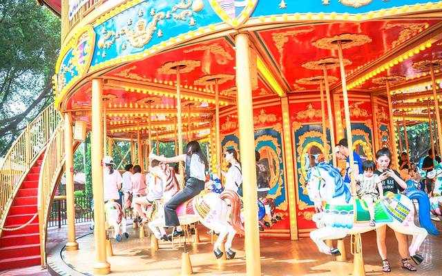 体验了那么多重口味的飞车过山车大摆锤,总要来体验一下软萌小清新的旋转木马;悠扬的旋律,起伏的木马,甜美的笑容,欢笑的同伴,真想时间就此定格,停留在这一浪漫的瞬间。