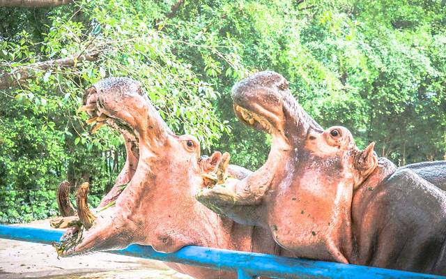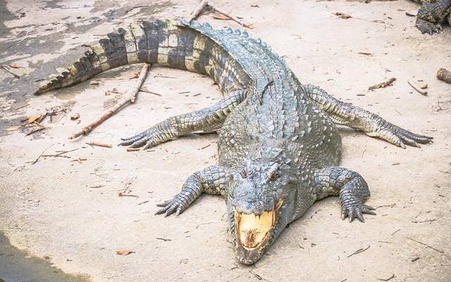 继续往里走,除了飞禽鸟类,公园里还养有等候喂食的鳄鱼;