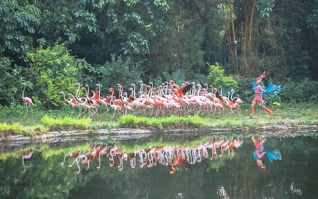 强烈安利飞鸟乐园里的百鸟飞歌,各种动物在盛装的饲养员带领下鱼贯登场,鹤、鹳、醍醐还有很多记不住名字的鸟类或是低空飞来,或者是水中游来;
