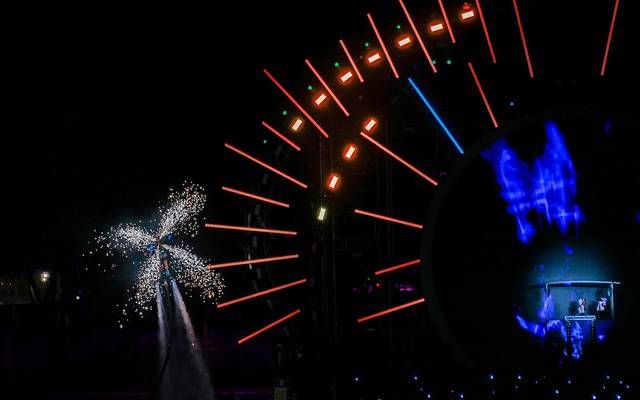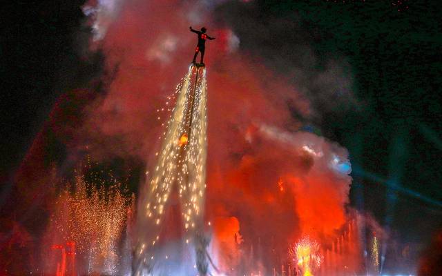 水上飞人精彩刺激的在水上腾空跃起,翻腾;让现场观众大呼精彩!让人忍不住的想留在这里,舞动摇摆着感受电音的魅力,享受魅力魔幻的长隆之夜!