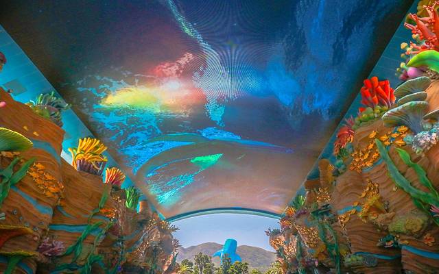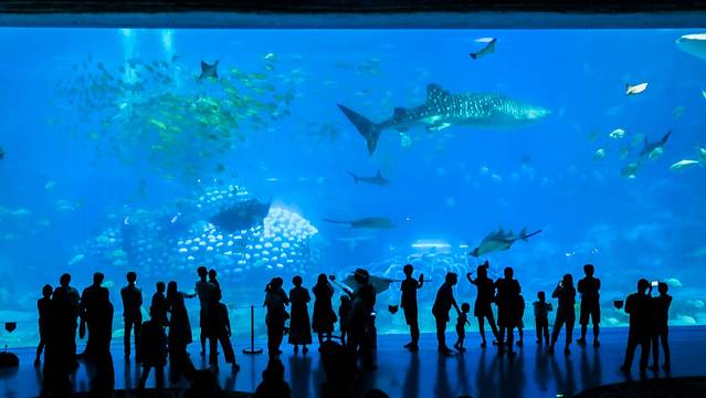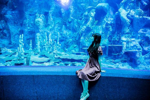 海洋馆饲养有不同品种的珍奇鱼类多达15000条,最为震撼的是馆内安装的世界最大亚克力玻璃,长39.6米,高8.3米,厚0.65米,通过领先全球的先进技术无缝连接,视界壮阔,从不同的角度为游客近距离展现无敌海底奇观,还可以和直径达4米的蝠鲼(魔鬼鱼)亲密接触。