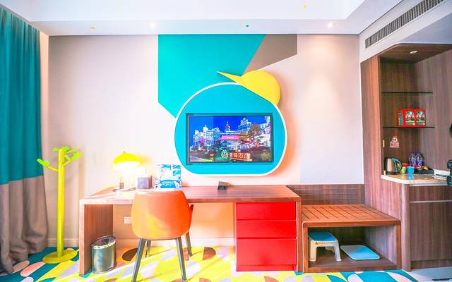 大堂办理入住的间隙,忍不住的环顾四周,整座酒店俨然一只童话城堡,实力还原卡通片中童话王国的风格,充满卡通梦幻色彩,不经意间就能穿越了时光;左边办理入住,右边办理退房和免费寄存行李,分配分明,职责明确,柜台前还有前往珠海或是机场的班车,住客需要的话提前预定即可,超级方便;