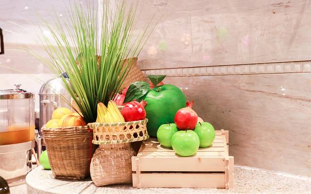 欢迎果盘安静的躺在长条桌上,