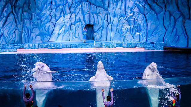 不容错过的当属三大海洋馆动物剧场的各种表演,呆萌灵活的海狮套圈打球、旋转跳跃、不停歇,陆地华尔兹、水中芭蕾各式表演都能拿下;