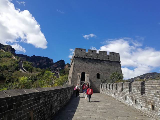 爬长城可真得有耐力,路途中特别感动的是看到一对老爷爷老奶奶相互搀扶着一起爬长城,两个人相互鼓励,那种画面好有爱。还有就是一个爸爸带着5-6岁的孩子爬,快到顶的时候,爸爸一直鼓励孩子,加油马上就到顶了,这种教育方式也让我感到莫名的开心。嘻嘻,当然有我男朋友的陪伴,我也超级幸福,还有那青山和蓝天白云,这一天可以说是相当完美了。