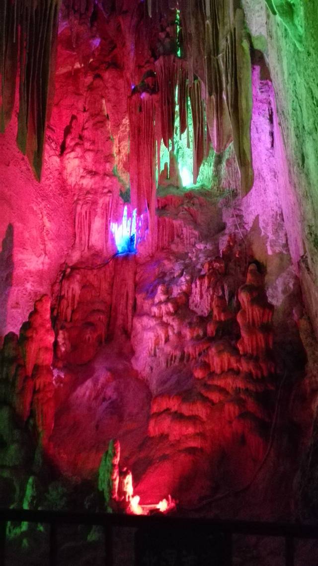溶洞地面有从山上流下来的水,孩子和老人一定要注意别滑到,最后出口那一段铁质楼梯也是够长的,爬上去感觉还挺累。溶洞里有拍照的工作人员(现在很多景点都有这种服务),小照片免费给,但要大照片的话就需要额外花钱,在出口处取照片。这个看个人喜好是否需要,个人觉得小照片还是可以要的,起码留个小纪念。整个溶洞浏览下来也就半个多小时左右。