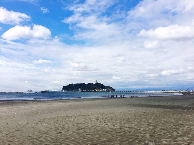 海边有一群人在上冲浪课,远处是江之岛,徐徐的海风,蓝蓝的天空,一些些遗憾,构成了对 镰仓 最后的记忆。