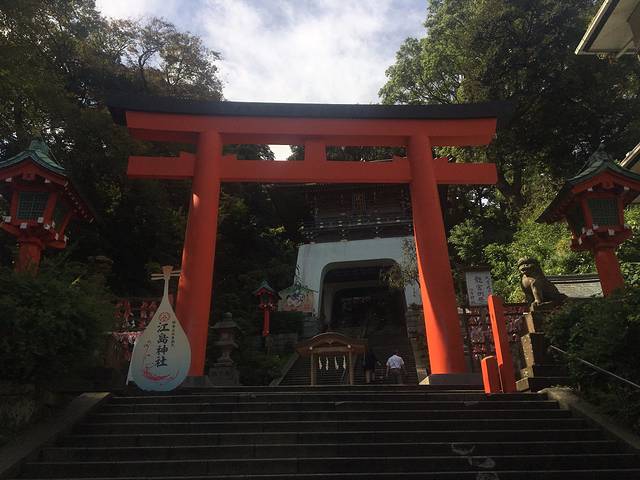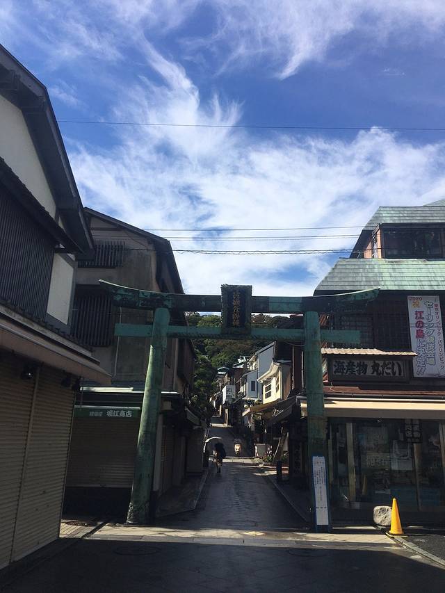 沿着坡道上去就是江岛神社。