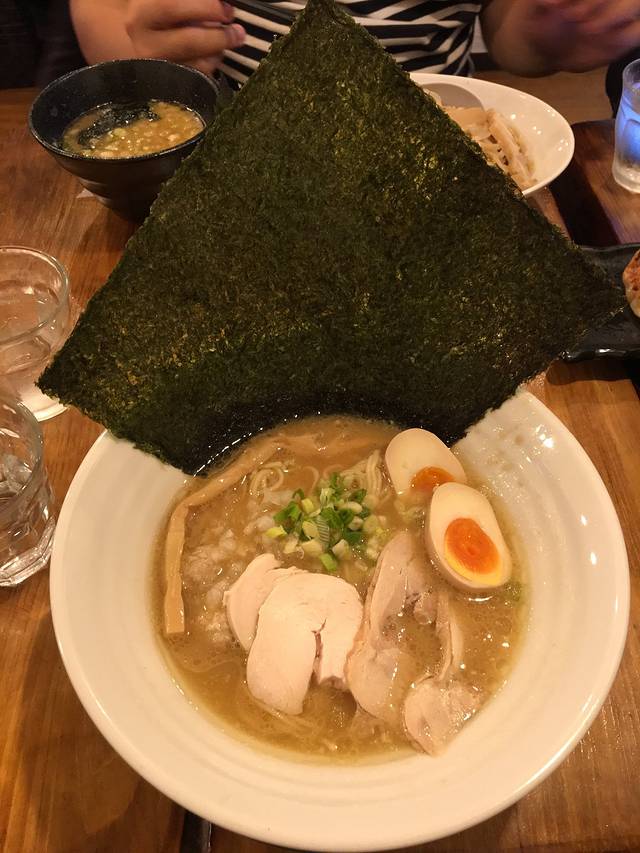 中午吃了浅草附近的鸡汤拉面,海苔非常大一个,说是自家制的海苔,吃法可以撕成小块和面一起吃,也可以直接吃或者泡汤吃,根据自己喜好啦,爱怎么吃就怎么吃。汤非常浓厚,我要的是比较清淡的口味还是很浓。喝多了会比较腻。