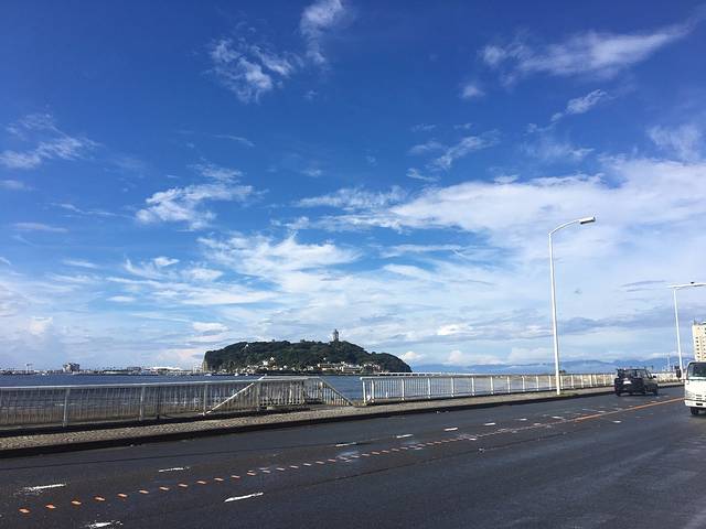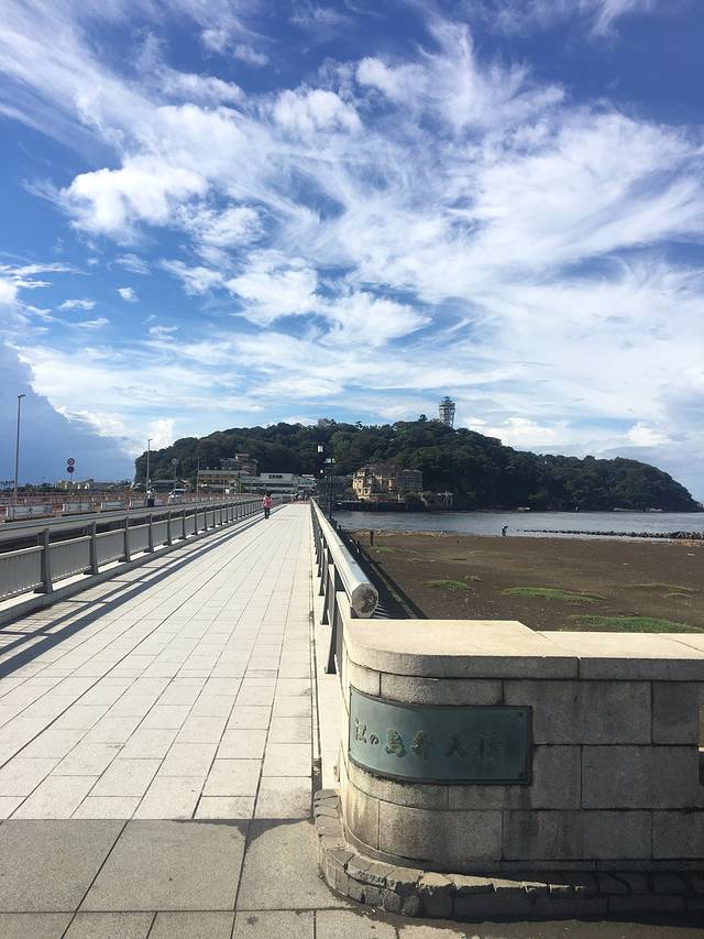 第二天一早,我们就出发前往江之岛,从民宿出来走出巷子就是海边,远处就是江之岛了。