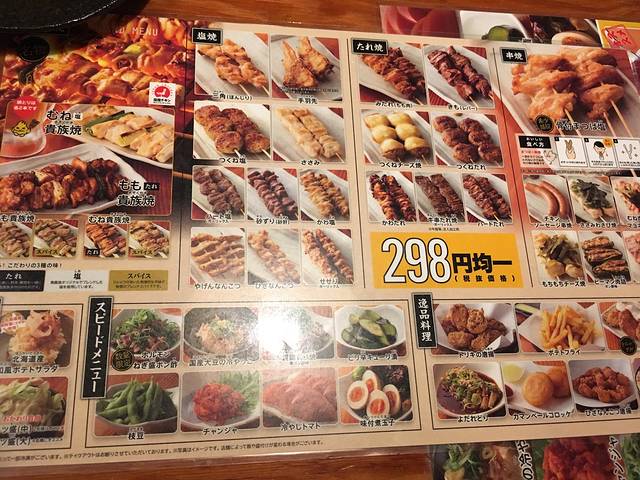 晚上和 东京 的朋友一起去吃了鸟贵族,这是关8成员大仓的爸爸开的一家烧鸟连锁店,慕名了好久,终于吃上了。店内所有食物和饮料都是均一价298日元(税别),晚上繁华地段的店铺一般人都很多,需要等位。烤串就是鸡的各种部位,从内脏到外皮的烤串、分为酱汁和盐烤的口味,味道是一般的烧鸟的味道,新品的热乌龙茶很好喝,可以直接在平板上点单。