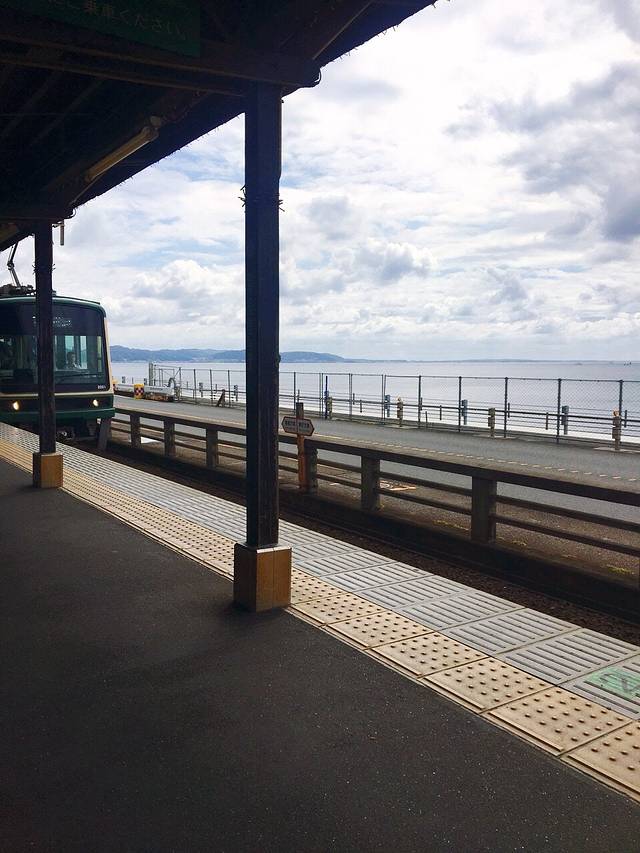 吃完饭,天公不作美就开始下雨了,我们朝着江之电的江之岛站出发,准备去下一站, 镰仓 高校前。