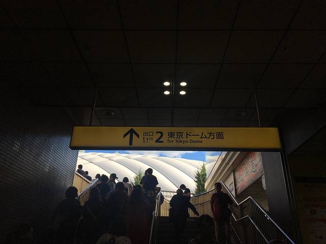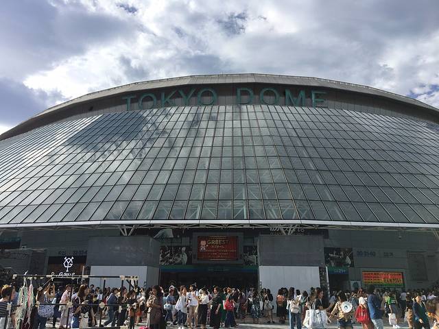下午早早就去了东蛋,感受开演前的气氛。后乐园站2号出口一出来便可以看到一个像膨胀的面包一样的建筑,那就是举行过非常多的棒球比赛和演唱会的 东京 巨蛋了,旁边是商场和游乐园,在蓝天的映衬下显得很美。