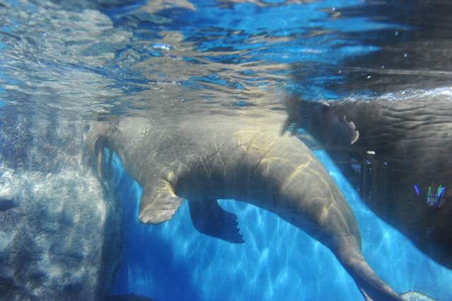 然后我们就直接进到了极地馆里面,因为我早就想看看白鲸了,白白胖胖的小精灵,而且特别聪明,会自己绕着圈玩,他们好像很喜欢有人看着他们,还想是要一起玩一样,特别招人喜欢。各种合影留念,就是海洋馆的的光线不是特别好,拍出来人都是黑黑的就不放图啦!