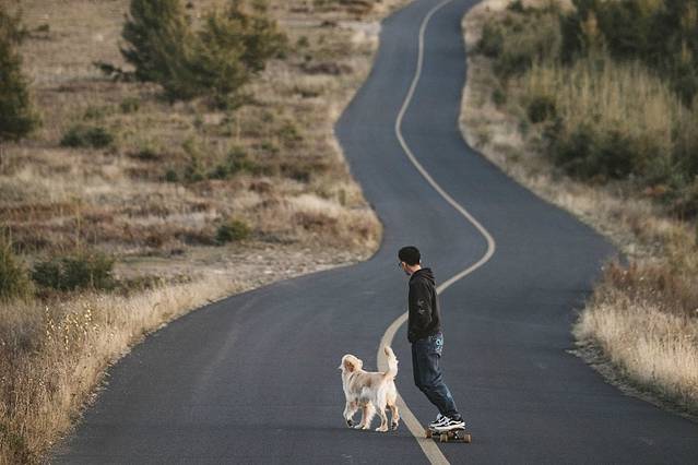 停好了车,我准备带着威士忌在这里周游一番,给威士忌吃了些狗粮,喝过了水,边走边逛。我还带了滑板,天黑前可以玩上一会。