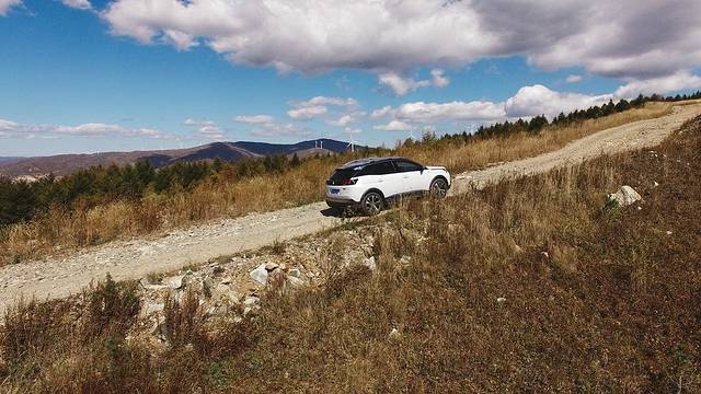 沿着树林我发现一条通往山顶的碎石路段,不需要犹豫,把车开上去看看。4008虽然是一款中级的SUV,但是这样的路况依旧可以驾驭。首先车的底盘扎实稳重,4008车重1492kg,比超过1500kg的许多同级车都轻一些,但是底盘的厚重抓地感却超过许多同级车,不得不令人佩服标致的底盘调校技术,开着特别踏实。