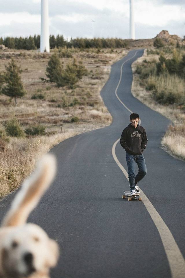 说来也是奇怪,这个公路上,十几分钟不见一辆车开过,难道这个中秋节很多小伙伴都留在家里过节呢?可能只有我想着出来自驾拍月亮吧,好了,没车自然是好事,在这里玩滑板是个最佳之地了,趁着天未黑,先溜几圈。