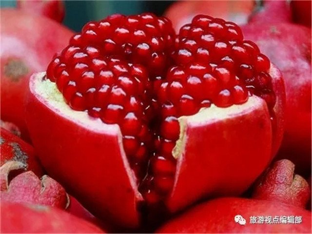 石榴石榴熟透了,像一个个红灯笼挂在枝头,绽开娃娃般可爱的笑口,争相向人们报告着收获的喜讯。亮晶晶、红灿灿的石榴子儿放在口中,果汁四溢......