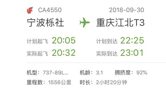宁波/重庆的行程