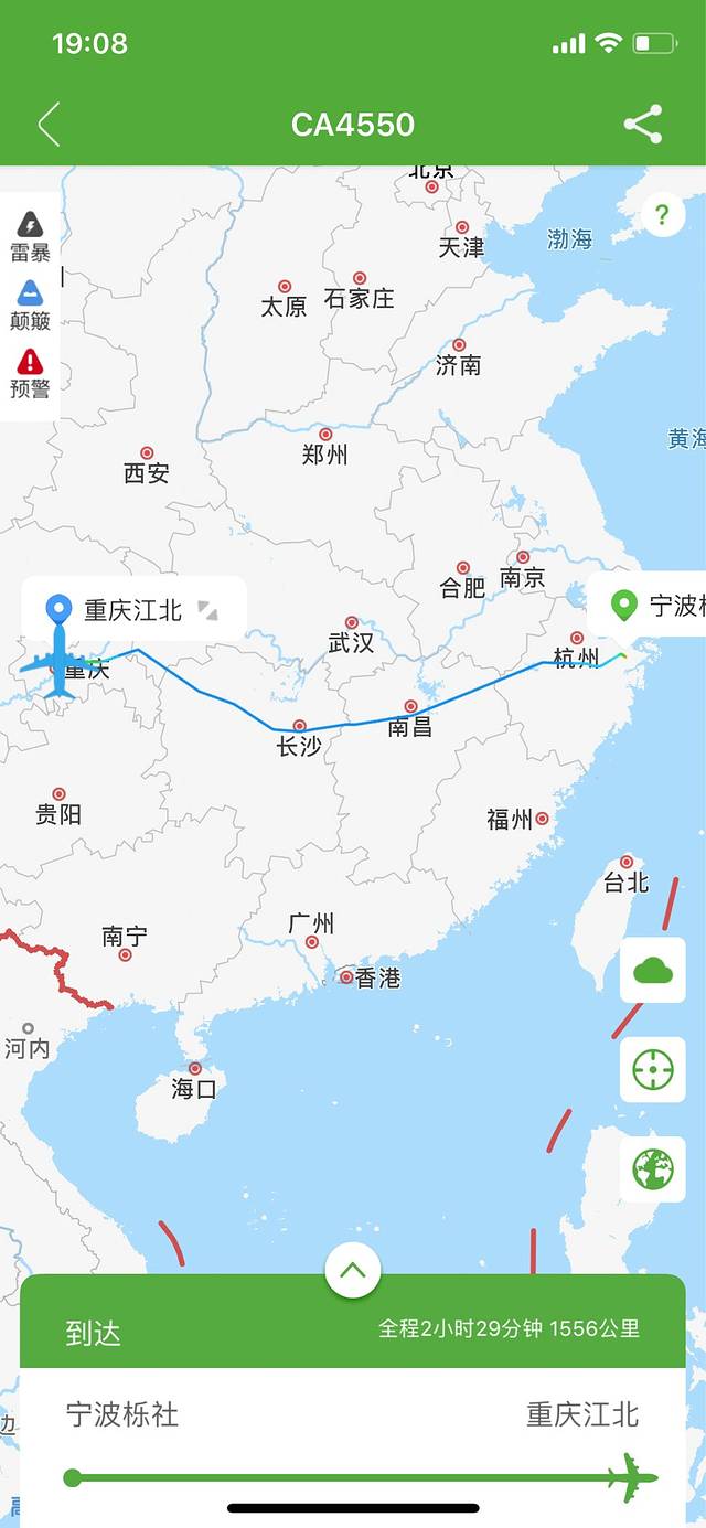 宁波/重庆 飞行轨迹图