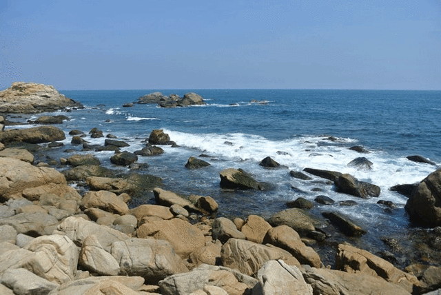 当我站在软软的沙滩上,抬眼望去,蔚蓝色的天空里悬浮着几朵绸缎般的白云,一望无际的海面波涛滚滚,远处,天与海已完全融成一体,偶尔有几只快艇疾驰飞过。这难道不是一幅美妙绝伦的彩色的画卷吗?不知多少年了,沙滩除了略微消瘦,没有太多的改变。光顾这里的阳光依然很温柔;在沙滩上觅食的小鸟还那样神情淡定,心无旁骛;清凉的海水依然保持一如既往的胸怀坦荡——喜欢干净,也善于藏污纳垢。它的坚持,不温不火,已保留了数不清的世纪!