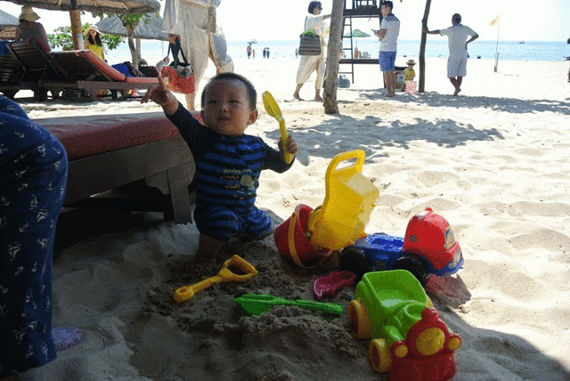 这次去 三亚 拖家带口共7人(其中有个1周岁的宝宝——小扣子),没做太多攻略,基本就是带着扣子玩,一家人住的是 亚龙湾 五号度假别墅酒店,在 三亚 没有换过酒店,主要是怕折腾。本来时间就不够(五天四夜——一晚还在 海口 ),订的航班也不好,路上就够奔波了,途中还有个小插曲,快到我们旅行的那周我被公司安排去 江苏 出差了 ,幸好我出发的那天我赶回了 武汉 ,晚上十点的飞机,我下午7点赶回了 武汉 ,8点到家了,换了身衣服,吃了块蛋糕马上就一大家人赶去机场了,为什么有蛋糕?因为我过生日啊,生日,生日,生日,重要的事情写3遍,好吧悲催的生日全在赶路。这一天的行程是盐城 —— 南京 —— 武汉 —— 海口 。对是 海口 ,我们选择了在 海口 休息一晚,第二天再去 三亚 。