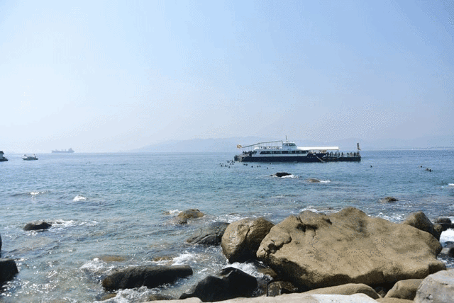 第三天,早上起床在酒店吃完早餐后,我们就驱车去往 蜈支洲岛 了,到了码头买好票,排队上船前往蜈支洲岛 ,由于每船人数有限制,运气不好,我和老婆带着孩子被安排在了另一艘船上,也好一家三口单独处处,这也是扣子第一坐海船啊,没有不良反应,表现非常好,上天下海都没有问题,坚定了老爸要多带你和你老妈出去走走的想法。