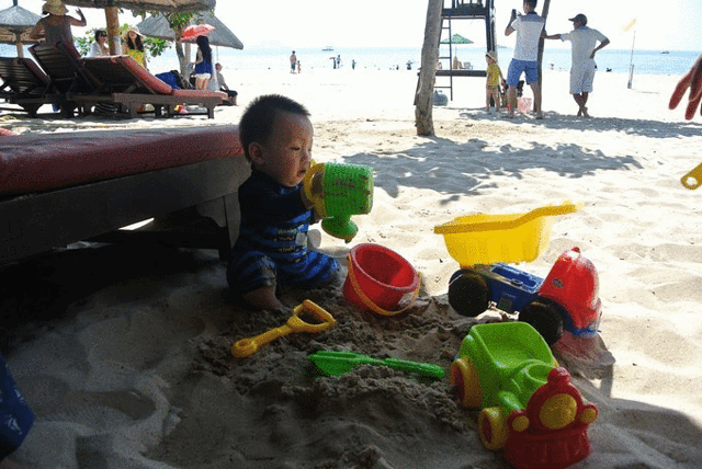 山顶逛完就可以下山了,准备回酒店,我们家小扣子那完全就是贪玩的主子,中午吃饭他就睡觉,吃完就醒,硬是玩了一下午。 亚龙湾 热带天堂森林公园里还有一个比较有意思的就是坐在电瓶车上,一旦途中遇到别的电瓶车就会互相大喊,没搞明白是什么意思。。。。。
