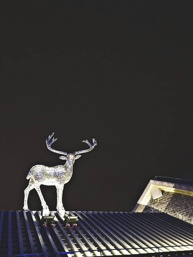夜晚的长嘉汇,好看。小鹿在屋顶上神气的站着。