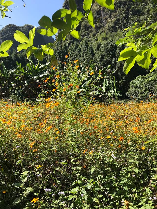 百香果藤下面拍的对面的花还有山,很漂亮吧,其实都不远的,🍌树下就是山啊
