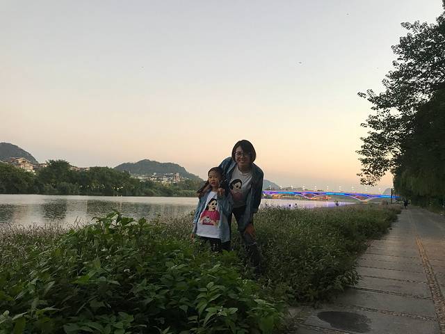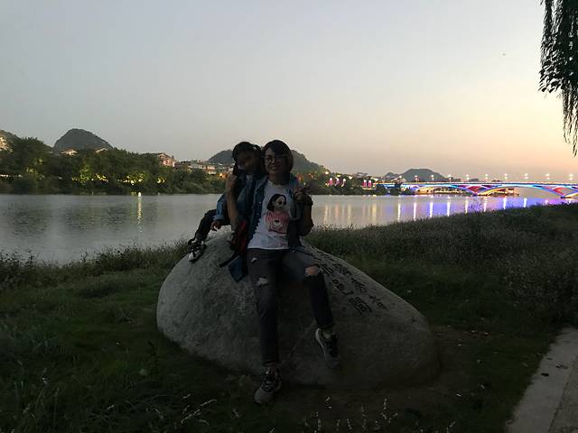 靖江王府出来后,我们溜达着走到江边看夜景,江边路可以下去,路边就是水,没有栏杆儿拦着的,夜景很美丽的说,我们没有坐游船,就一直在江边溜达,路过了两个码头,到8点半就共享单车回去了,在酒店对面吃了螺蛳粉跟炒米饭,没错就是普通蛋炒饭,我女神只喜欢这个……