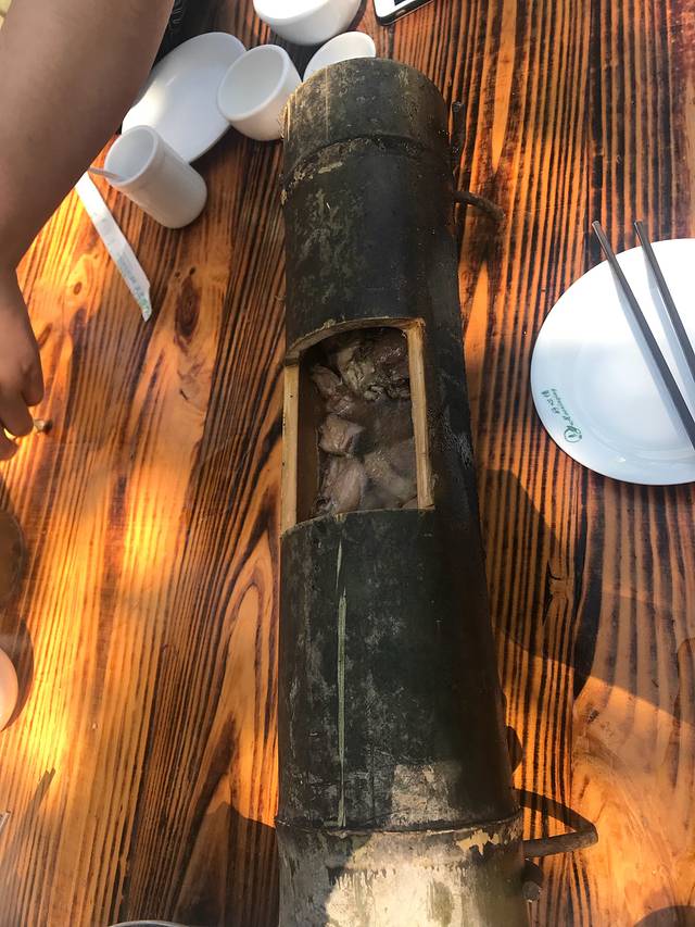 司机师傅推荐的竹筒鸡,很好吃,里面的汤要先成出来喝,就是师傅说景点要比别的地方贵了些,我们点的是200一份,看了市区的是158元一份,景区确实比较贵的。