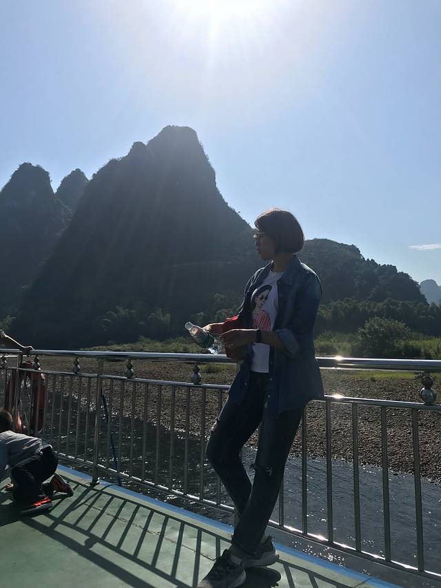 到了漓江司机师傅去买船票,一条船30个人,司机师傅在车上等我们,船上有导游小姐姐一路讲解山峰的名字由来,然后不停的拍照,老规矩20元一张,买不买随你,个人建议完全可以跟小伙伴对拍,真的!20元那里一定要抓紧时间拍,因为一会会儿的就过去了……船上有炸鱼虾拼盘,30元一份,女神之前山路吐了,她要求吃一份补补,个人觉得味道一般般吧,跟自己炸的没什么区别,当然可能是我手艺好,所以没有觉得好吃吧,不要diss 我,姐的手艺真的不错,下厨房“坐在坑边看你跳”当然就是随便做做,因为比较馋么😂漓江主要就是看风景,完了就下船去下一个地方啦~