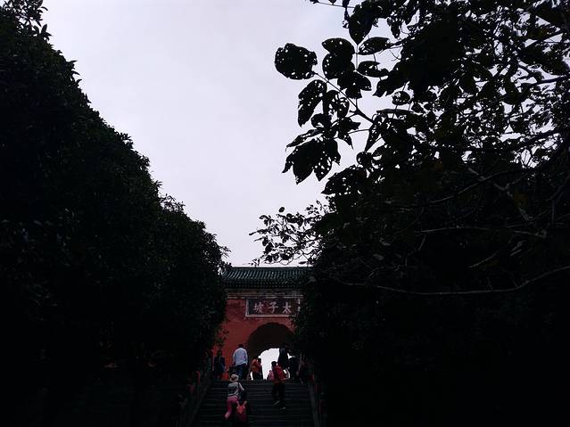 线路二:坐巴士延太子坡——逍遥谷——紫逍宫——南岩。下车地是乌鸦岭游客集散中心,此处呈现“Y"型方向,右向南岩宫殿(龙头香),左向金顶。本人先去南岩后折回乌鸦岭,再去金顶。金顶至少要五个小时,不要被景区设置的路标公里数迷惑啊,中途会遇到一个分岔口,左手边会略微缓和,右手边是朝天门古神道(后面跟着一、二、三天门)一路上行全是、全是陡峭的台阶,如果走到岔道已经很疲惫了,就选择左侧上行,右侧慎选、慎选、慎选。我就是因为太高估自己,选个右侧朝天门古神道一路上行,每爬一小段都要喘息休整好久,简直爬到绝望。不过好处就是爬过之后,征服感抖升。