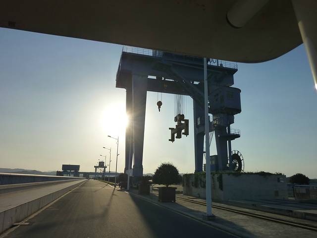 接下来我们坐着观光车来到坝顶,登上坝顶,鸟瞰丹江口城区,鳞次栉比的楼房,青山绿水、粉墙黛瓦,一切尽收眼底。抬眼远眺,武当山隐隐再现,回首平视,巍巍大坝横锁汉江。