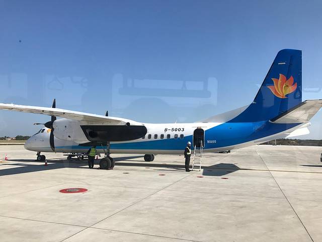这次出行交通的选择一直在邮轮和飞机之间摇摆不定,但最终选择了飞机。第一次坐小型飞机,自己就吃了亏。小型飞机一定不要选靠近螺旋桨的座位,虽然旅程很短但声音很大,这次坐在螺旋桨旁边的我耳鸣了好久。诶......
