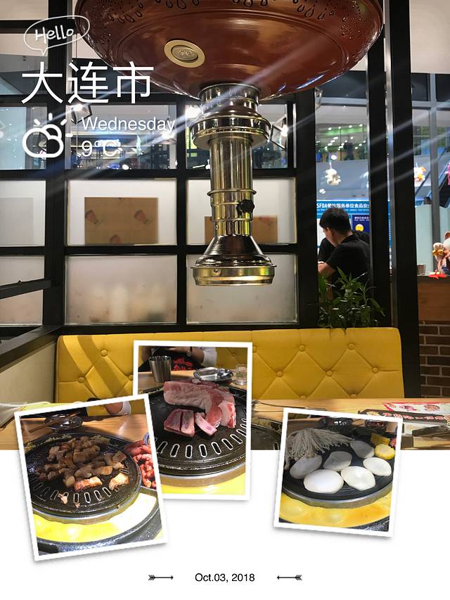 晚餐我们选择的是比较火的烤肉店——老板娘的烤肉店。因为我们到时离饭点还有一点时间,所以人还不是很多。吃完感觉还是不错的!不同于其他的烤肉店,这家店给的分量很足。我们点了厚厚的五花肉,上来的时候真的给我吓到了,真的是一条五花肉!这么直接粗暴的画面还是第一次见。五花肉肥而不腻,味道鲜美。除了美食,这里的服务也可以点赞,帅气的服务员小哥哥一直在帮我们烤肉,不用自己动手,嘻嘻~