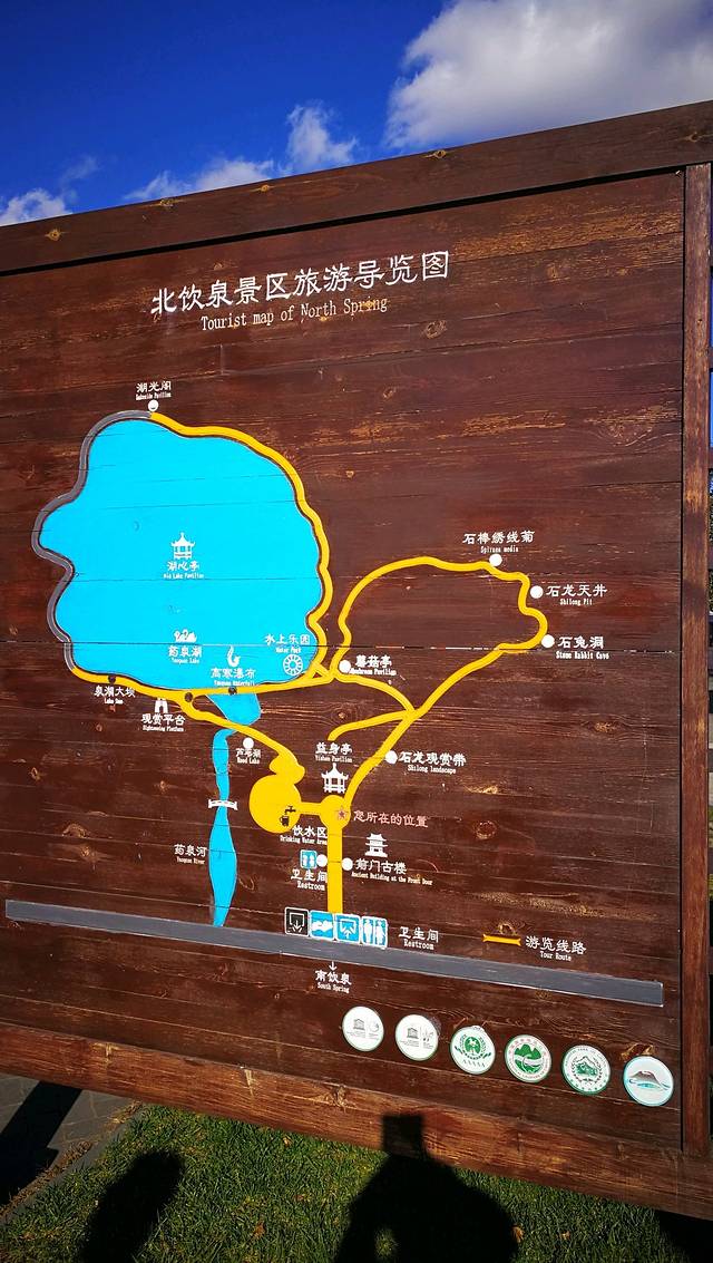 第一个抵达地点是图中这个位置,询问资费后,知道了景区的景点门票是单独收费的,想去哪就在哪个景区买票,没有必要买联票。在此处停车,不收费,走路到北泉南泉。
