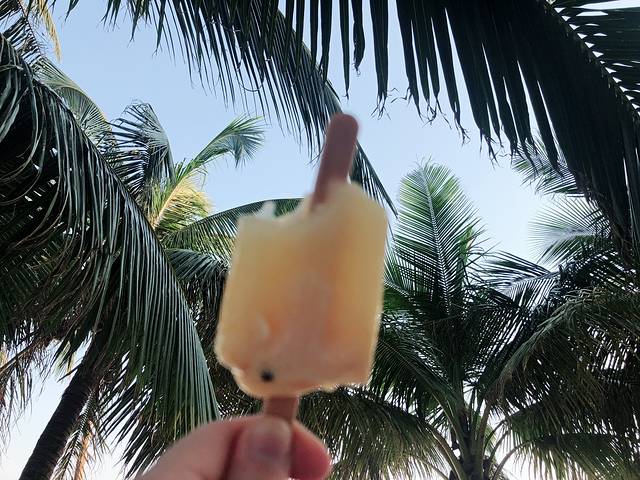 老公下海游泳🏊去了,用一根冰棍打发我。随处可见的自制水果冰棍,7元一根,味道一般,只为了尝鲜。