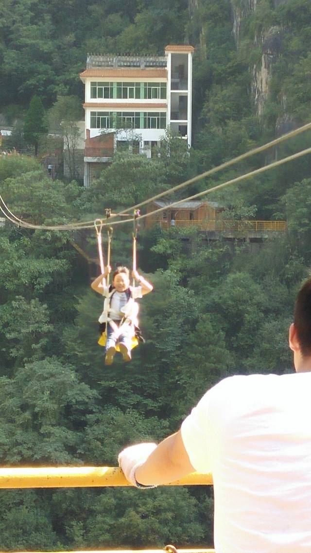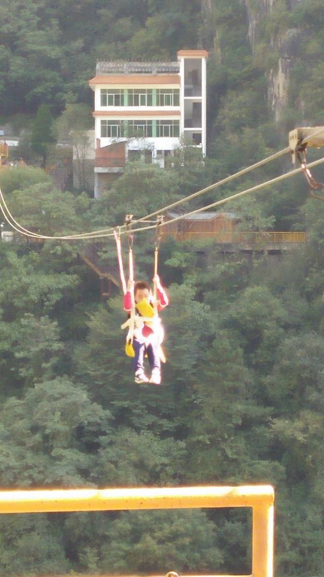 玩了一次滑索,小孩子的胆量比大人还大,玩个往返还嫌不够。
