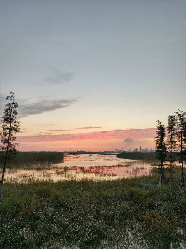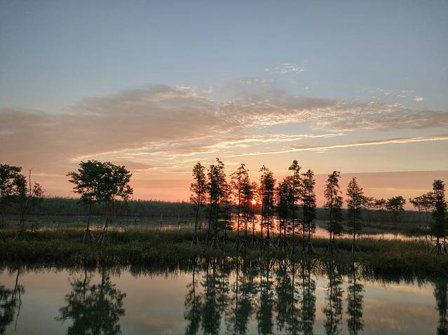 初升的太阳,早上我们来到了双山岛大伯墩湿地公园取景