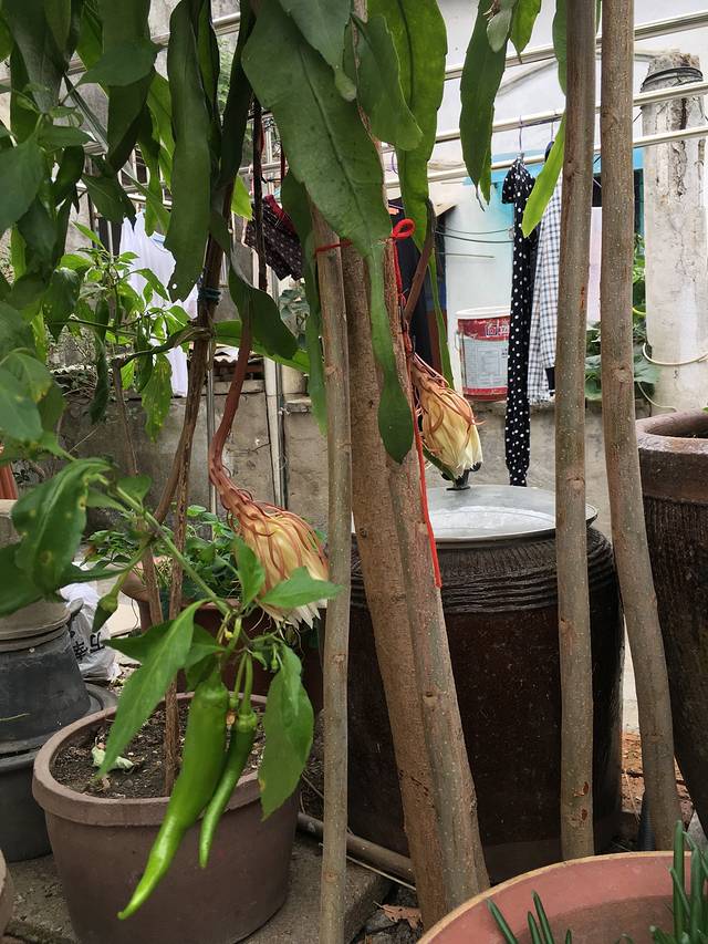 和当地老爷爷说话,这是老爷爷种的昙花,刚昨晚开过