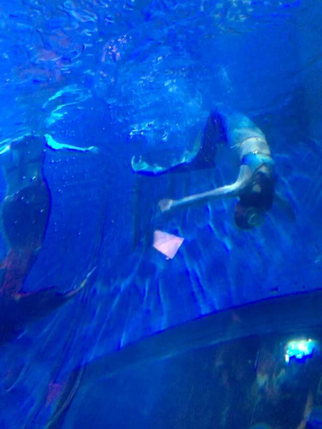 白鲸表演没有去看,因为队很长,在上海也看过了。蛮幸运的看到了隧道观光廊的美人鱼表演,身材很好!午饭建议自己事先买好带上。