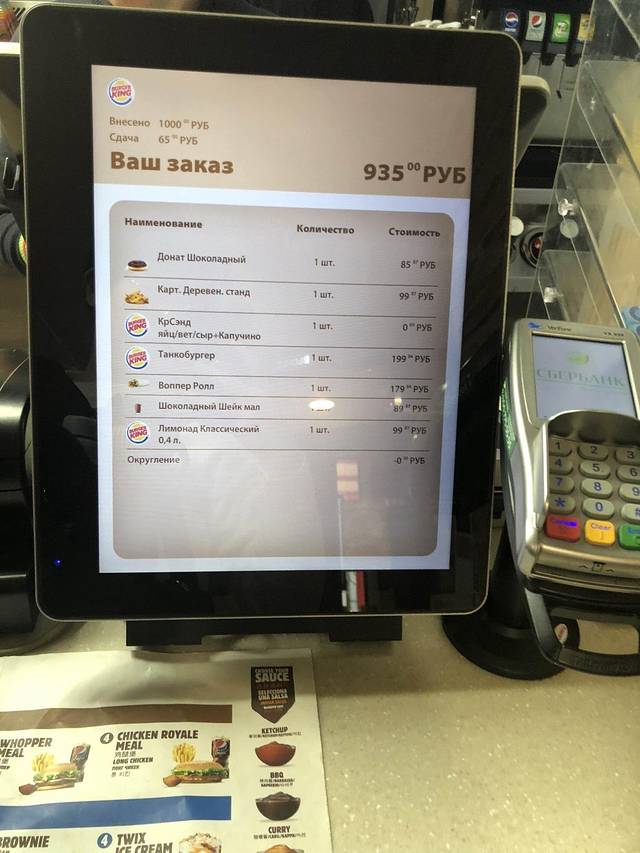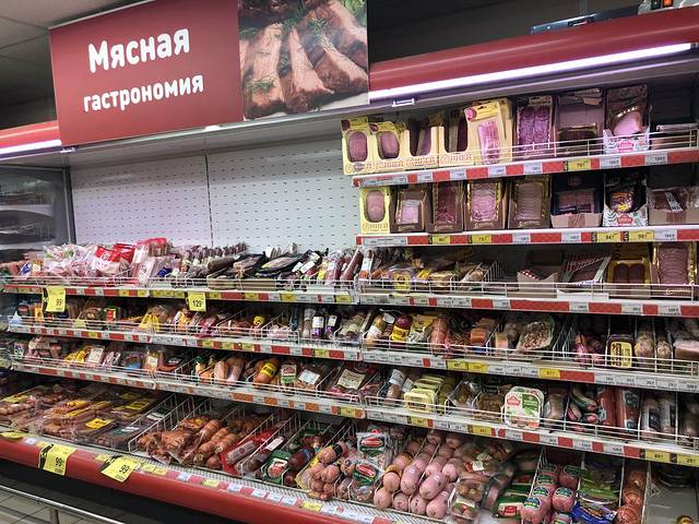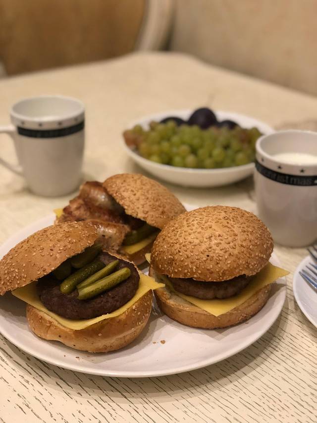 各种肉制品——连汉堡的肉饼都有。比麦当劳用的要厚1倍至少。一个厚牛肉饼大约50~60卢布