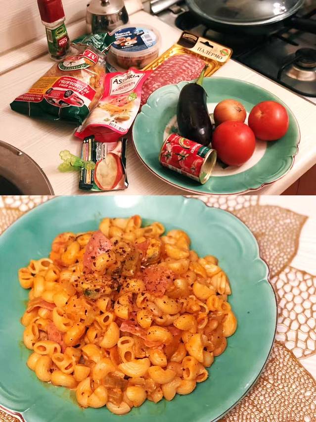 昨天是奶油蘑菇意面,今天是番茄海鲜意面!