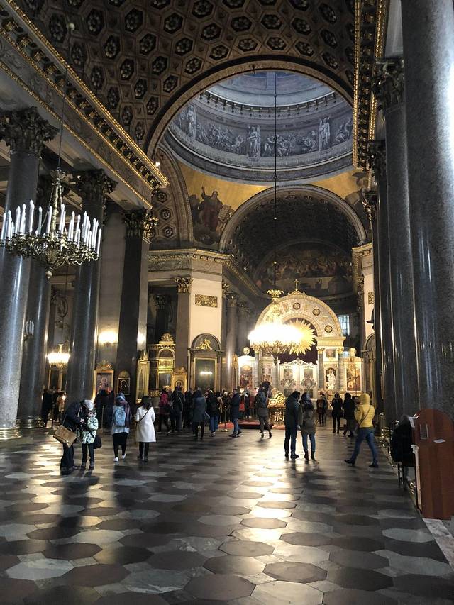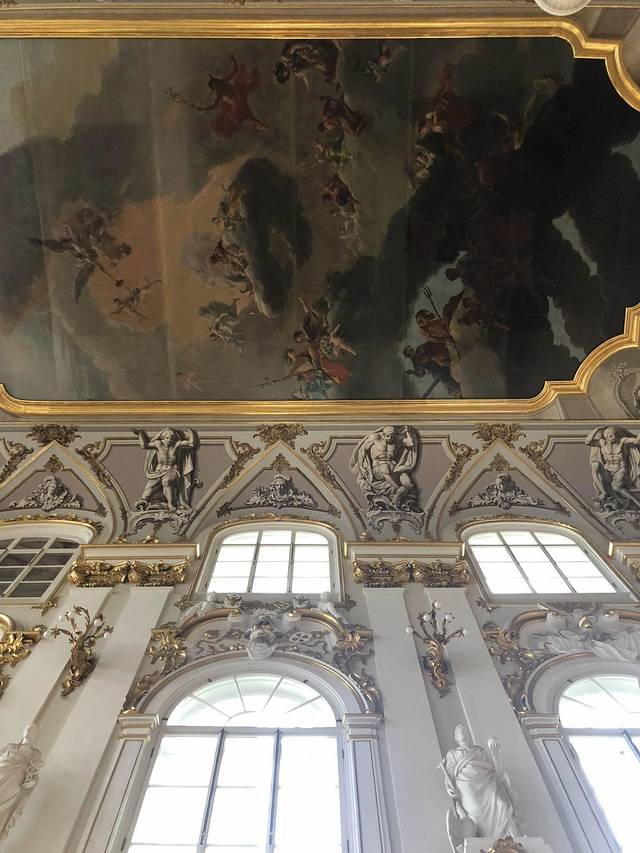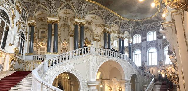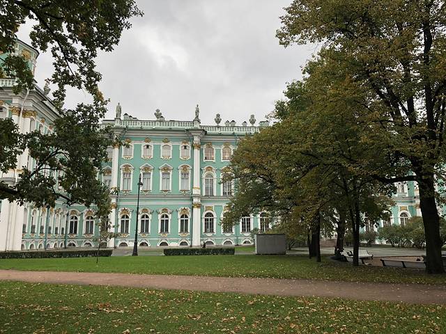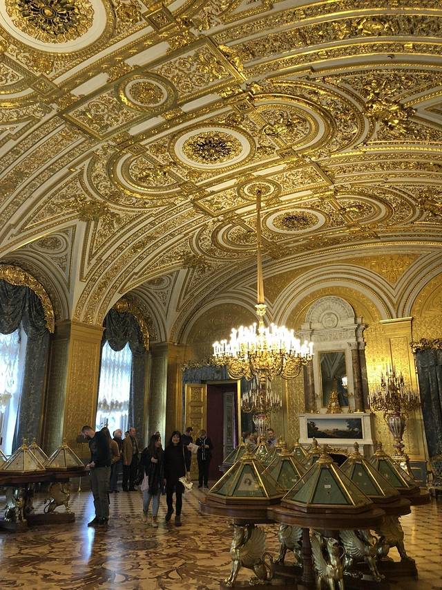 别人攻略里说冬宫可以走一天,确实如此。但是我们3已经看得麻木了:哦这样,很棒。最终1.5小时后,我们决定撤场!(出去时,外面正下大雨,我们只有一把伞,于是在出口大厅停留了一段时间,工作人员一度想引导我们出去,我们解释了雨太大想先躲一下,还好今天人也不多,她们就放任我们了~)