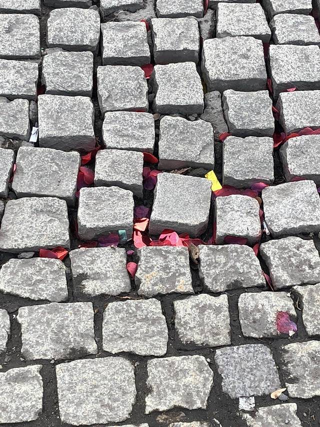 涅瓦河桥上,石头缝里面的彩带纸。之前是有什么庆典吧?