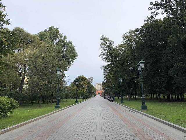 亚历山大花园内,这里已经是红场外围。前方有个玻璃房就是售票处。