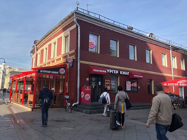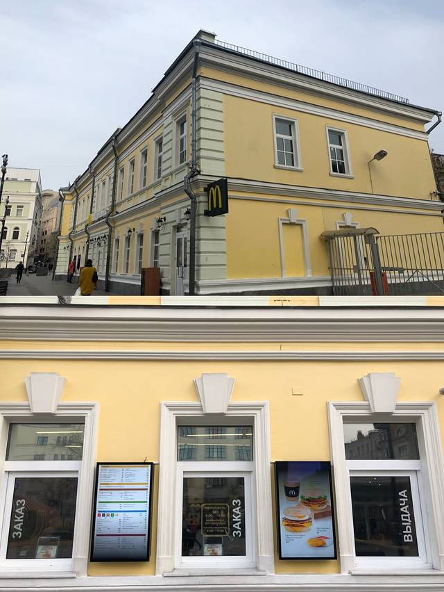麦当劳。话说俄罗斯地铁也是M的标记,但是讲真,地铁的M都没麦当劳的明显,一些地铁的标记你真的要来来回回才恍然大悟:原来这里就是地铁入口!